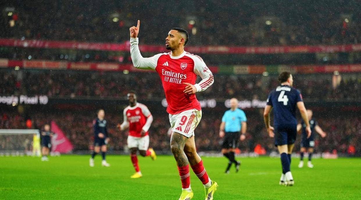 这时候维冈的球员估计脑袋都是懵的。 高潮还没完,第23分钟,萨卡在右边底线回敲,热苏斯门前一蹭,逼得对方后卫亨特把球碰进了自家大门,3-0。 最精彩的收尾在第27分钟,诺尔高从中场送出一记挑传,热苏斯反越位成功,面对门将轻巧地一记挑射,4-0!