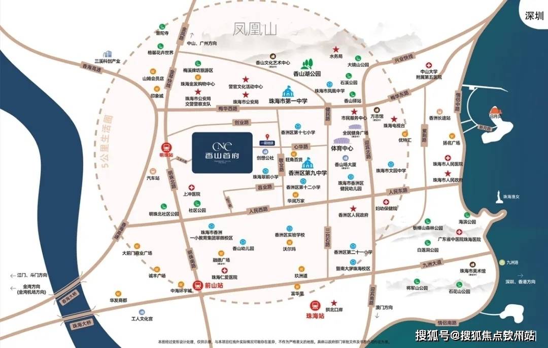 珠海新香洲·超百万㎡城市航母-禹洲·香山首府,项目规划配套两所幼儿园、一所小学、两座体育公园、一级邻里中心、shopping mall、写字楼及酒店等
