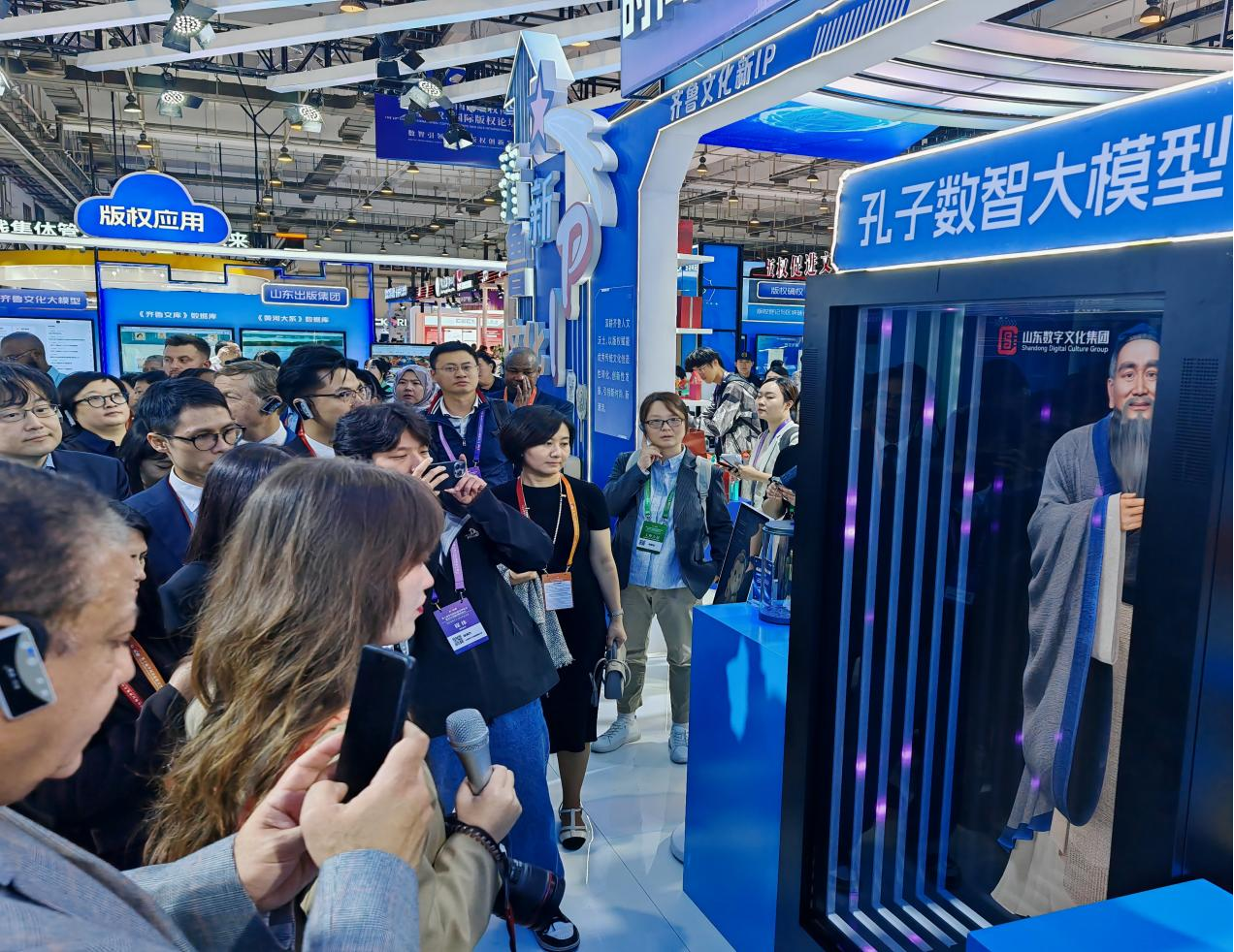 “数智化的齐鲁版权”C位亮相,从登记、创造、确权、保护到交易、应用,一条版权数智化链条清晰呈现在观众面前。近年来,山东拥抱数字时代,坚持创新引领、科技赋能,构建数字智能与版权工作全链条融合发展的新生态。