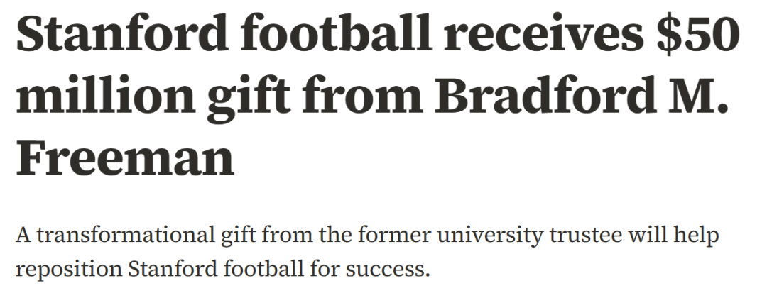 PS:斯坦福今年获得一笔高达5000万美元的体育定向捐赠,会直接用于对员的财务支持,招募最优秀的体育特长生。