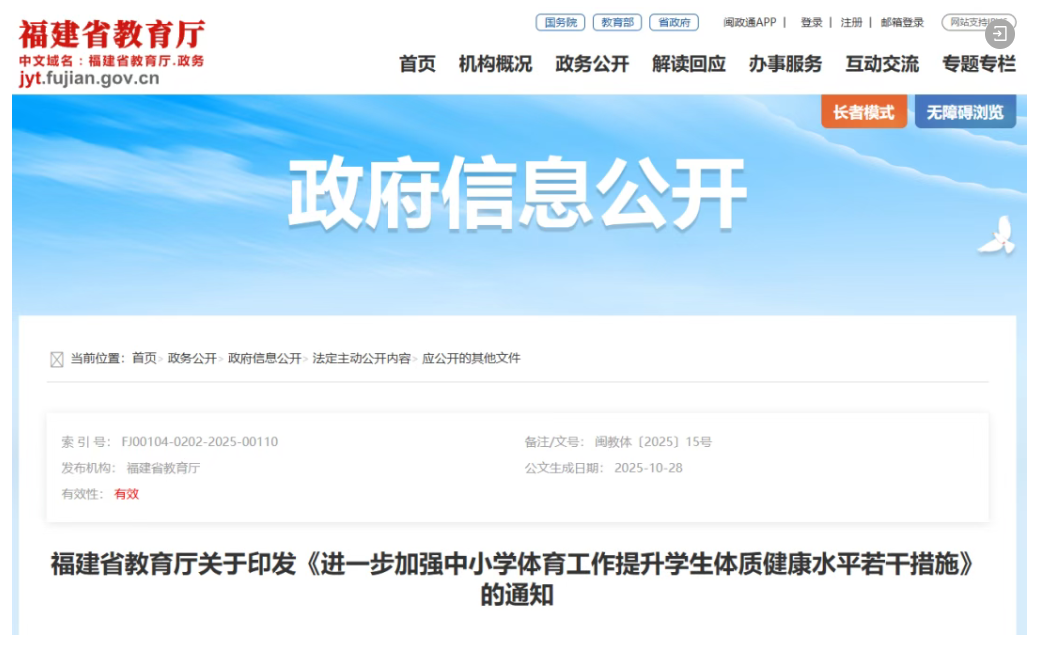 爱体育,爱体育官方网站,爱体育APP下载福建省教育厅印发的《进一步加强中小学体育工作提升学生体质健康水平若干措施》文件明确指出:“调整优化举措自2026年中考开始实施,具体实施细则由各设区市教育部门制定并报省教育厅备案。”这意味着全省都将在2026年体育中考中实行新的政策。